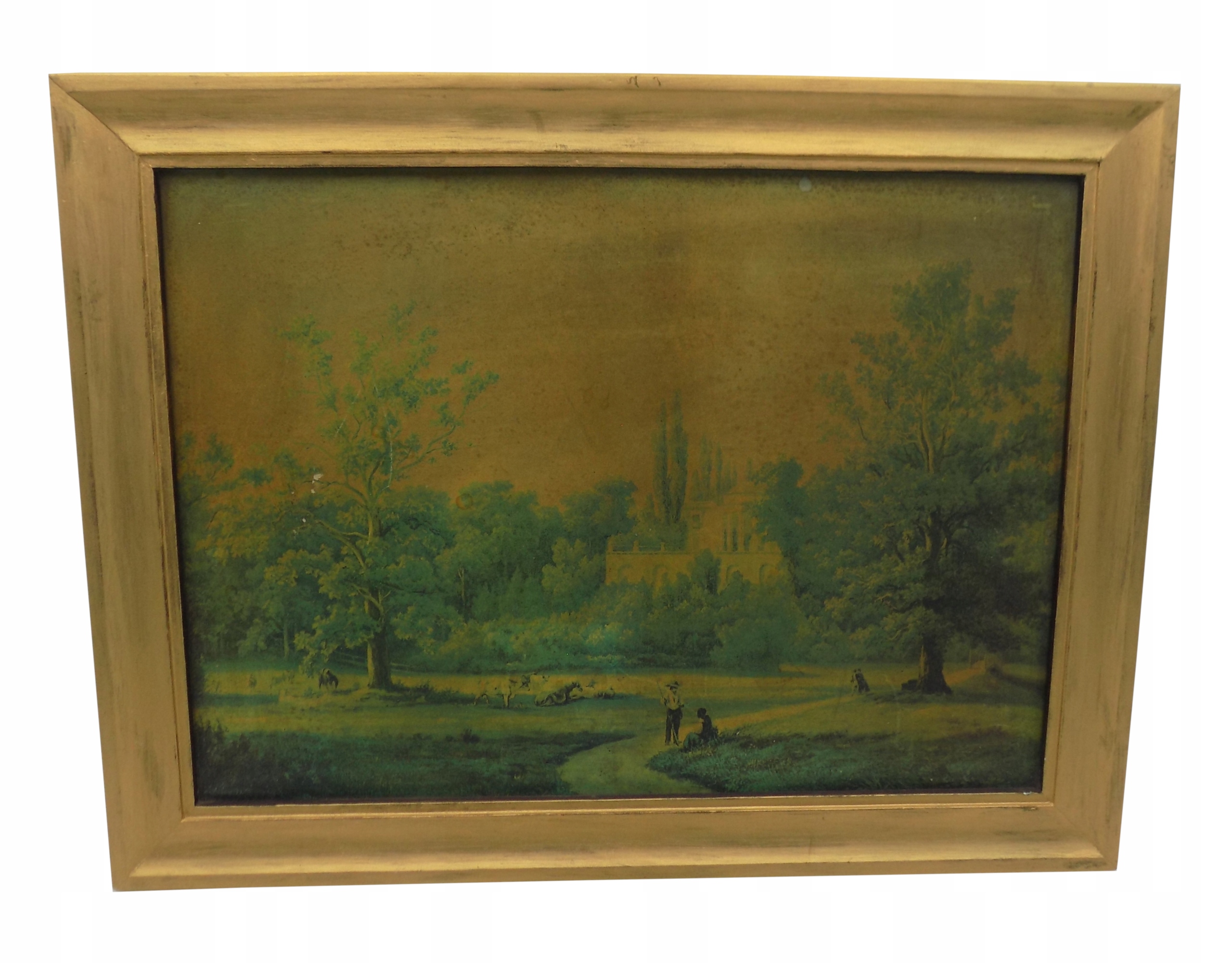 Репродукція жанрової сцени в дерев'яній рамі, ймовірно періоду ПНР. На звороті картини написана присвята. Стан показаний на прикріплених фото. Розміри; 37 х 48 см.