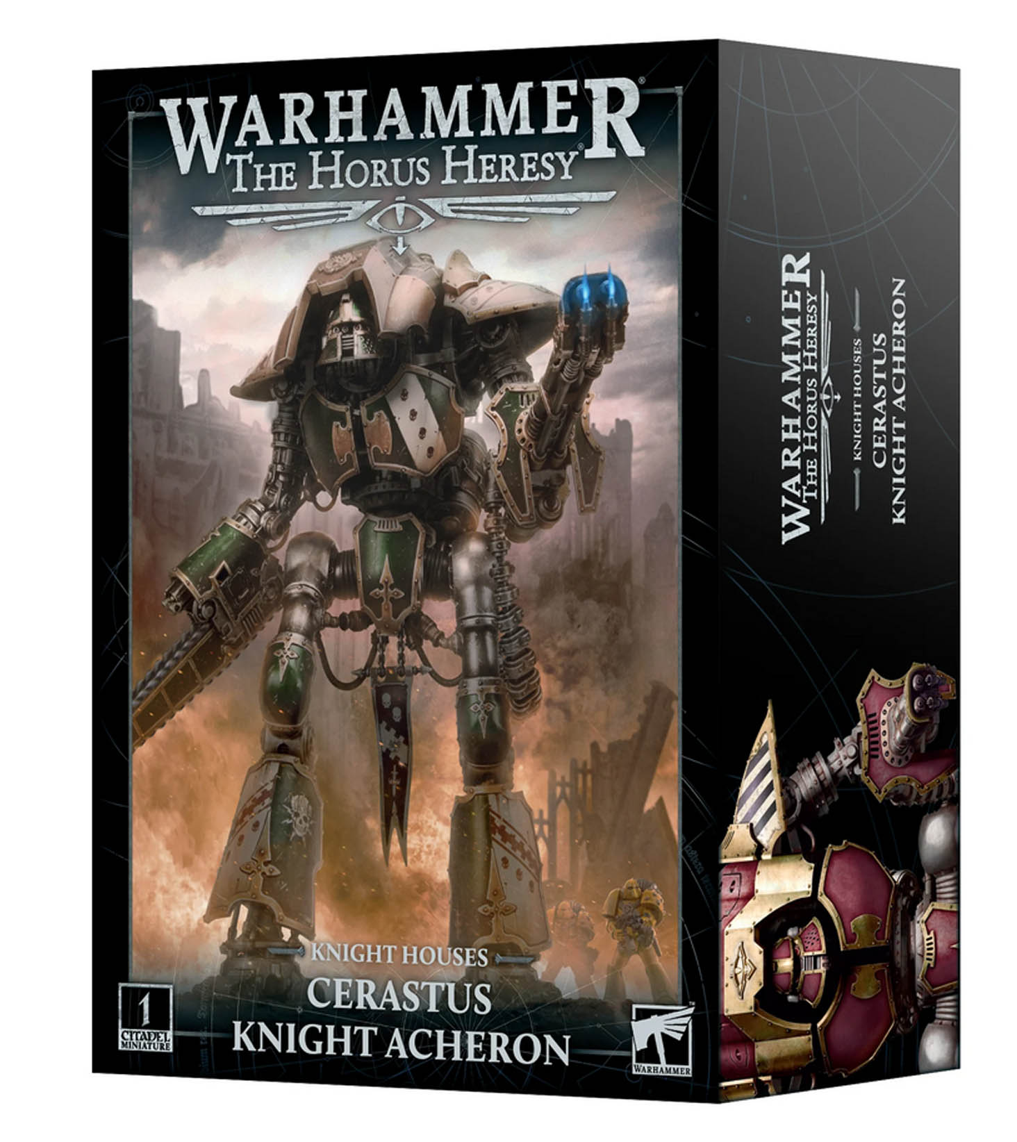 Ця багатокомпонентна частина пластиковий набір створює один Лицар Церастус Ахерон – жахливу бойову машину, яка перетворює всю опозицію на попіл. Навіть вищий за своїх двоюрідних братів із класу Квесторіс, Лицар Ахерон крокує по полю бою, випускаючи сплески зловмисного вогню зі своєї встановленої на руці буревійної гармати та рознищуючи сильніших ворогів ударами свого злого ланцюгового кулака женця.