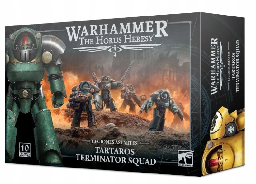 Цей багатокомпонентний пластиковий набір складається з 10 Термінаторів Тартароса, які можна використати в Warhammer: Horus Heresy як Загін Термінатора Тартароса з 10 моделей або дві одиниці по 5 моделей кожна. Кожен Термінатор озброєний комбінованим болтером із зображенням Тигру та потужним кулаком, ланцюговим кулаком або кігтем блискавки — ви також можете замінити комбінований болт парою кігтів блискавки. Коробка також містить два зарядні пристрої для волкайтів і два силові мечі, а також низку іншої спеціалізованої зброї – по два важких вогнеметів, плазмових бластерів і автогармат для жнив. Набір містить компоненти для створення сержанта Тартароса для кожного з ваших загонів, зі спеціальними тулубами, стегнами та наплечниками, а також альтернативними головами та двома обручами для гранат.