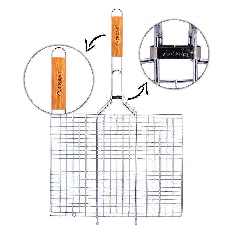 Подвійна решітка з довгою ручкою ідеально підходить для смаження шматочків м'яса, ніжної риби, сосисок, овочів тощо.