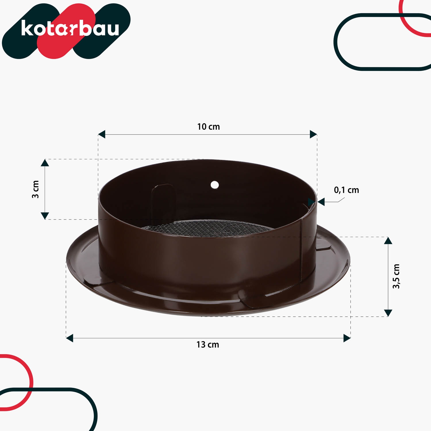 РЕШІТКА ВЕНТИЛЯЦІЙНОЇ КРИШКИ, КОРИЧНЕВА 100 ММ, КРУГЛА ЗАСУВКА ЗІ СТАЛЕВОЮ СІТКОЮ