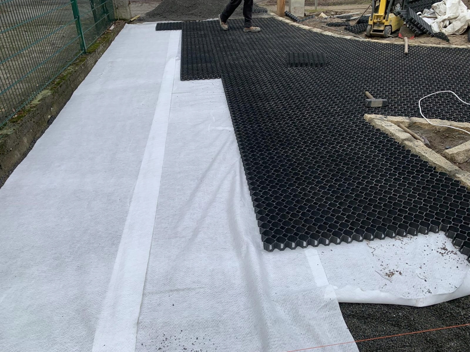 фундамент -це навантажувальний шар всієї структури, належним чином надається впевненістю, що решітки не пошкодять під колесами автомобілів, а ями та колії не утворюватимуться на дорозі. Стіни решітки повинні бути повністю покриті каменем або ґрунтом. Вони не повинні триматися порожніми, оскільки вони можуть бути пошкоджені.