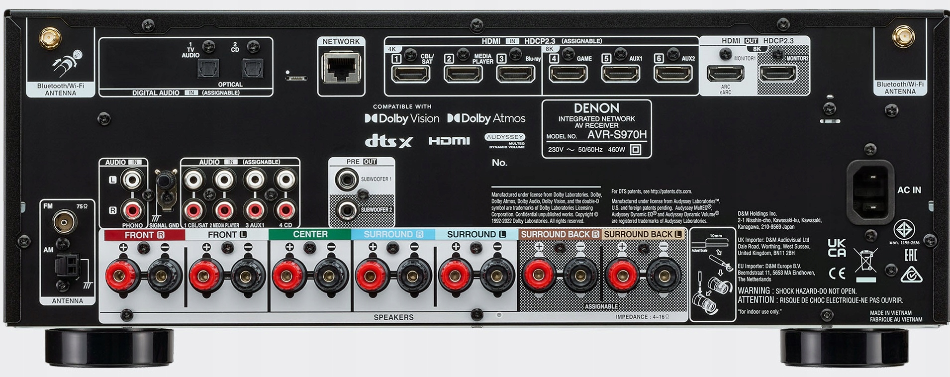 Ресивер домашнього кінотеатру 7.2 із підтримкою Dolby Atmos, DTS:X, 8K, Wi-Fi, Bluetooth, HEOS - Denon AVR-S970H