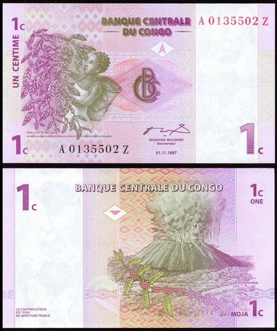 РЕСП. КОНГО ДЕМ., 1 СЕНТАЙМ 1997, сер. Z, Pick 80р