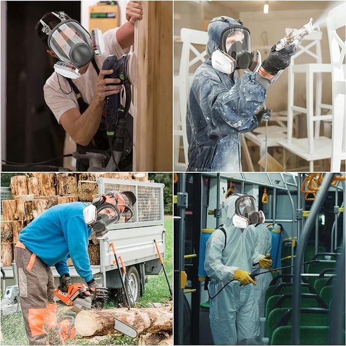 ⭐Наша повнолицьова респіраторна маска має широкий спектр застосувань, зокрема для зварювання, шліфування, запису, полірування, експериментування, розпилення, столярних та інших робіт, на роботах, пов’язаних із забруднювачами в повітрі. Ви також можете добре захистити себе за допомогою нашої повнолицевої маски.