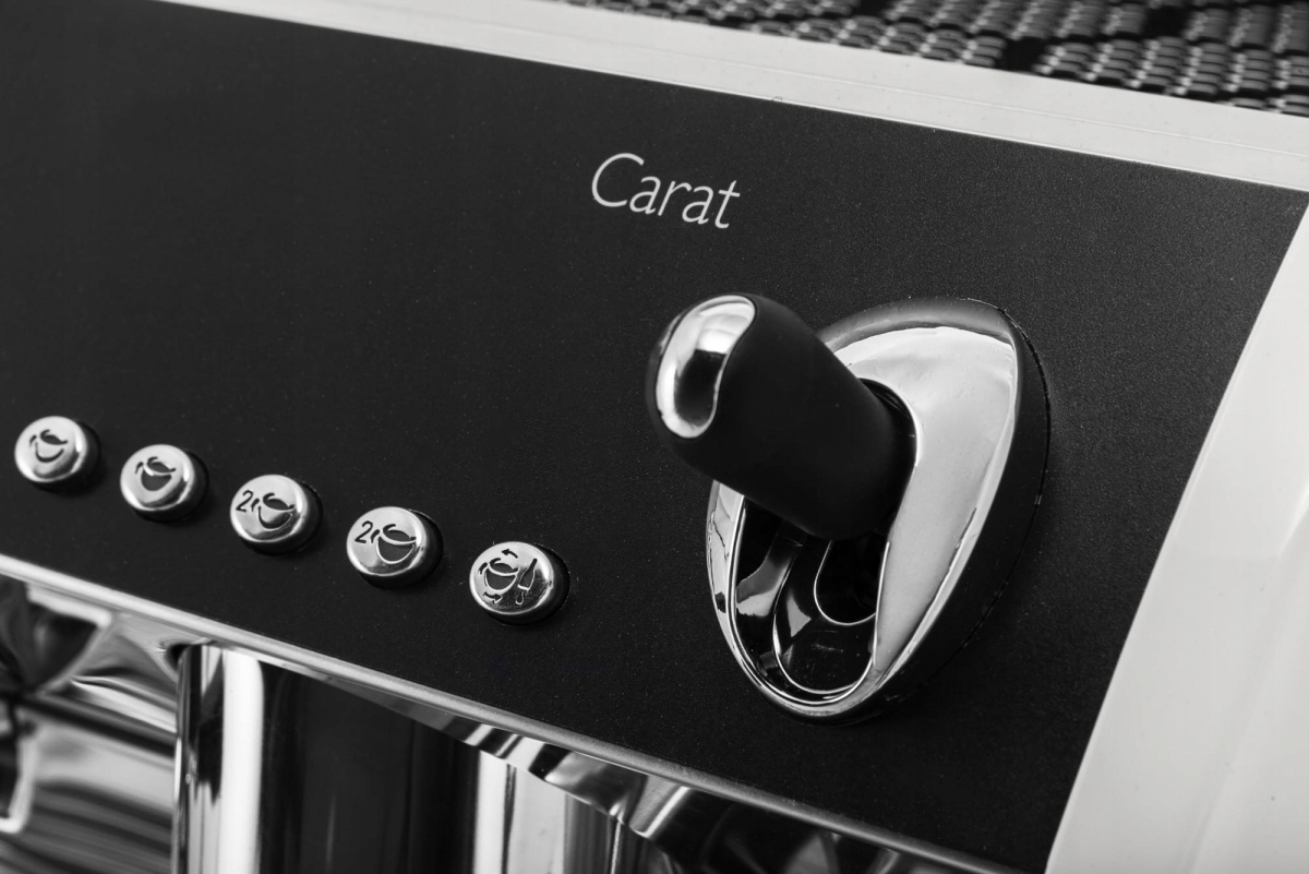 Лінія кавових машин Carat створена ідеально. Завдяки інноваційному дизайну та технології вони привертають увагу незалежно від того, де вони розташовані. Ці пристрої є одними з найбільш енергоефективних кавових машин на ринку. У стандартній комплектації вони мають термоковдру товщиною 10 мм на котлі та спеціальні термомати на задній частині корпусу. Carat чудово спінює молоко однією кнопкою та готує найкращий еспресо. Насадка турбопарника надійна і дає відмінні результати завдяки системі впорскування повітря, що працює від перистальтичного насоса, і постійному контролю температури під час спінювання молока, яку можна налаштувати відповідно до індивідуальних потреб. Моделі Carat автоматично «вчаться» коли їх використовують і регулюють енергоспоживання. Дисплей дозволяє програмувати, серед іншого: температура води в котлі або кількість води, що подається через форсунку для кип’ятіння. Спеціально профільовані приклади ідеально лягають на будь-яку руку. Це однозначно найкращий варіант для професійної кавоварки з фільтром у цій ціновій категорії.