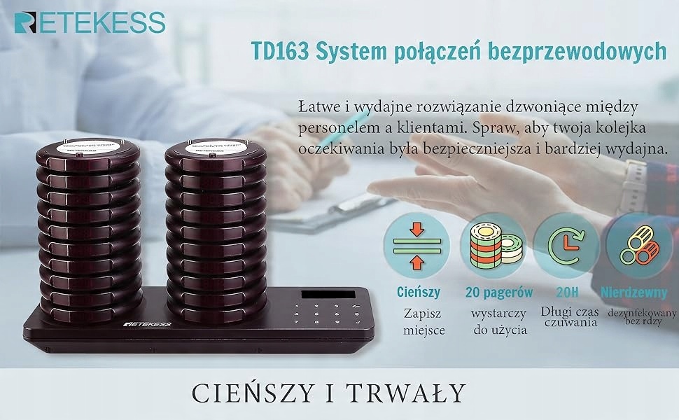 Ресторанний пейджер Retekess TD163, пейджингова система, 20 пейджерів, 400 МБ