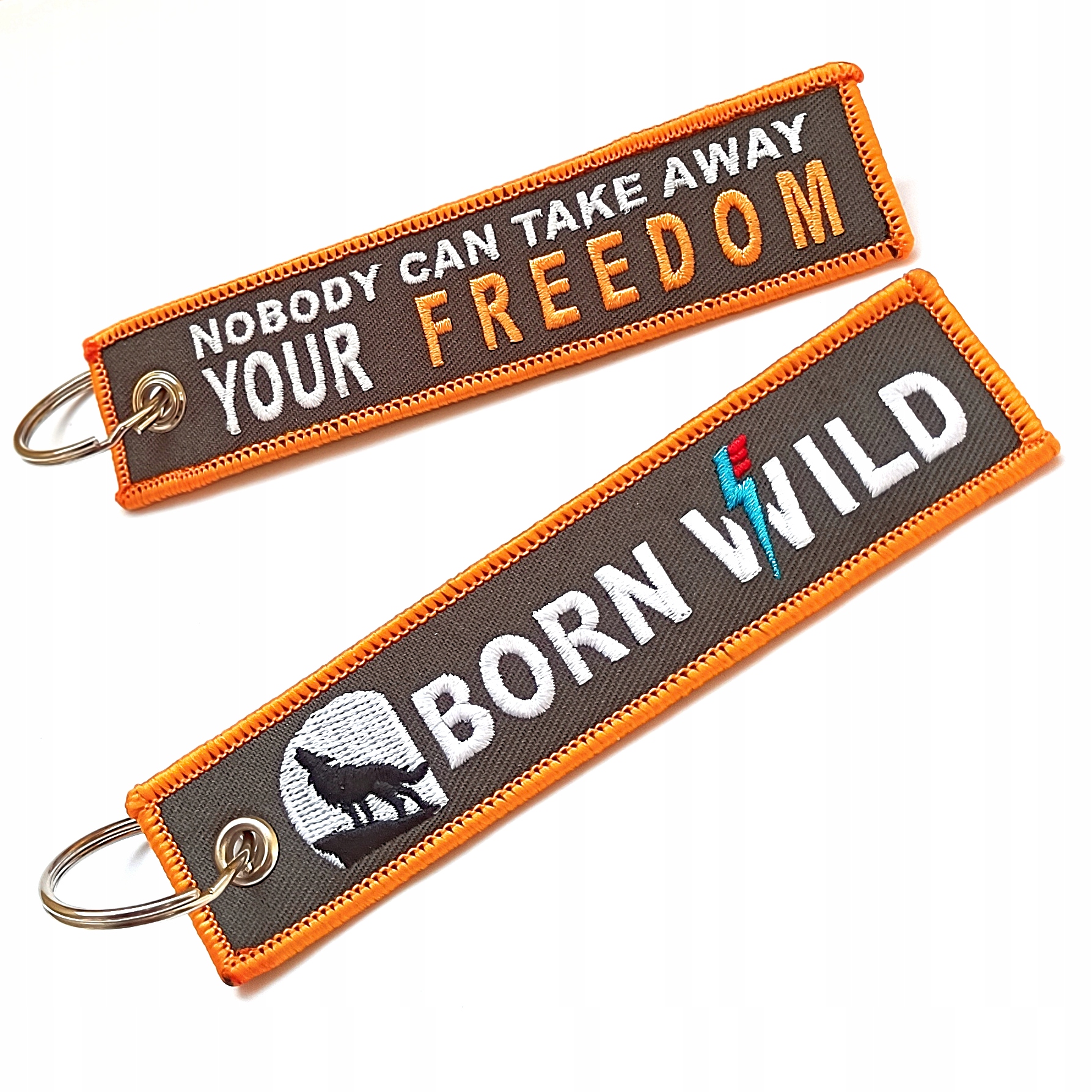 Логотип вовка BORN WILD і текст на зворотному боці - НІХТО НЕ МОЖЕ ВІДБРАТИ ВАШУ СВОБОДУ - красномовно підкреслюють стиль кожної казки.