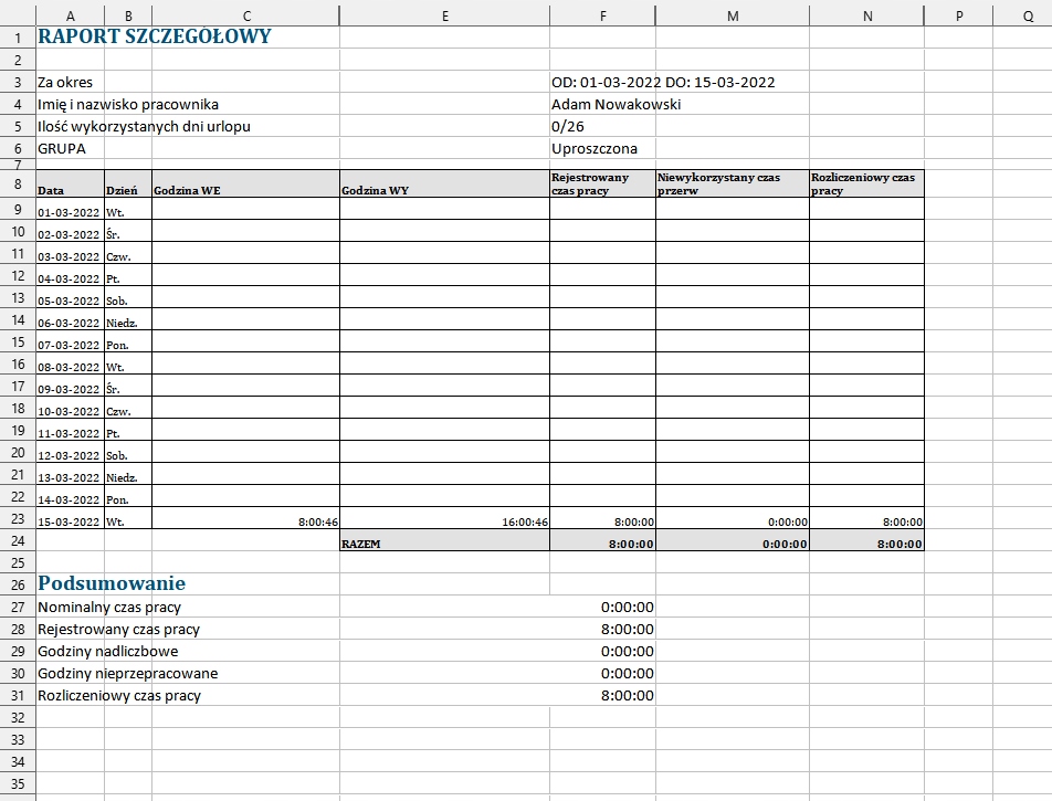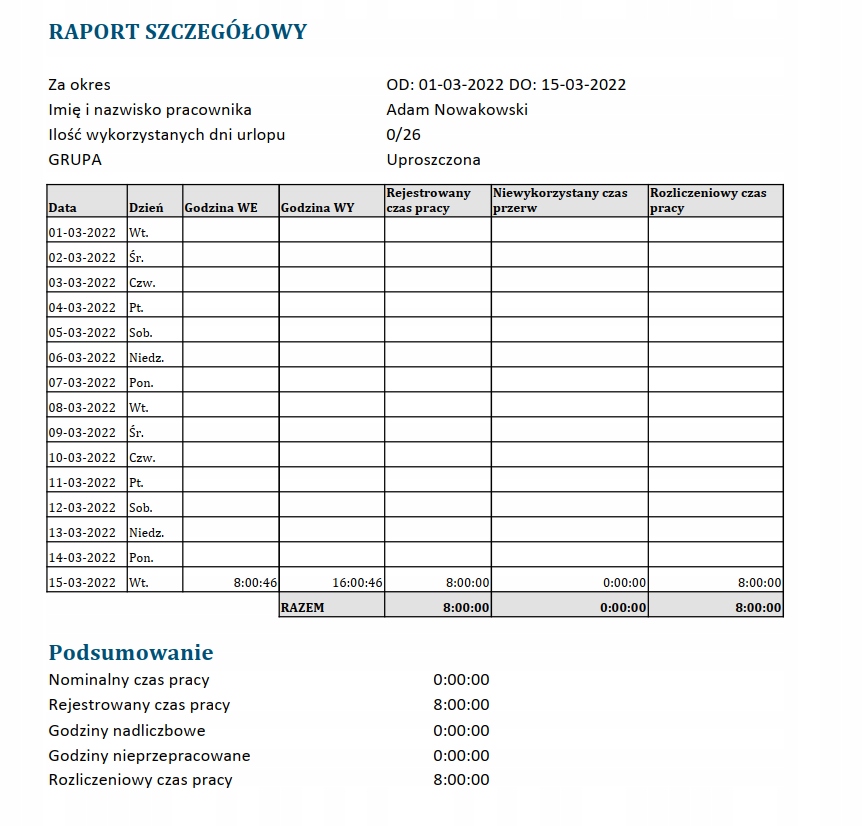 Програма працює з урахуванням простоти використання. Вам більше не доведеться копітко складати робочі графіки, приділяючи цьому свій дорогоцінний час. Введіть, скільки хвилин на день повинні працювати співробітники, і програма перевірить, чи виконано ці припущення, надасть фактичний робочий час і, вибравши відповідну опцію, розрахує понаднормову роботу.