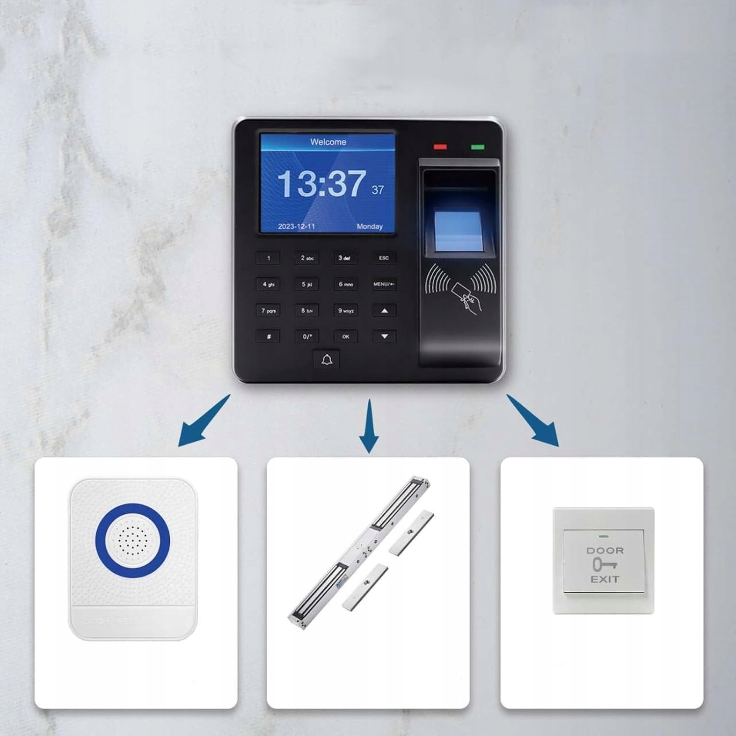 • Методи розблокування: ✅ Відбиток пальця, ✅ пароль, ✅ RFID-карта/брелок 125 кГц