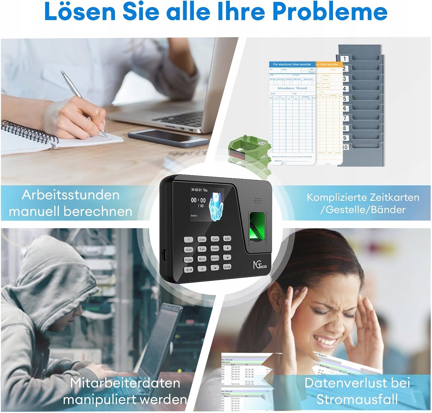 Реєстратор робочого часу, німецька мова NGTeco, годинник із відбитками пальців