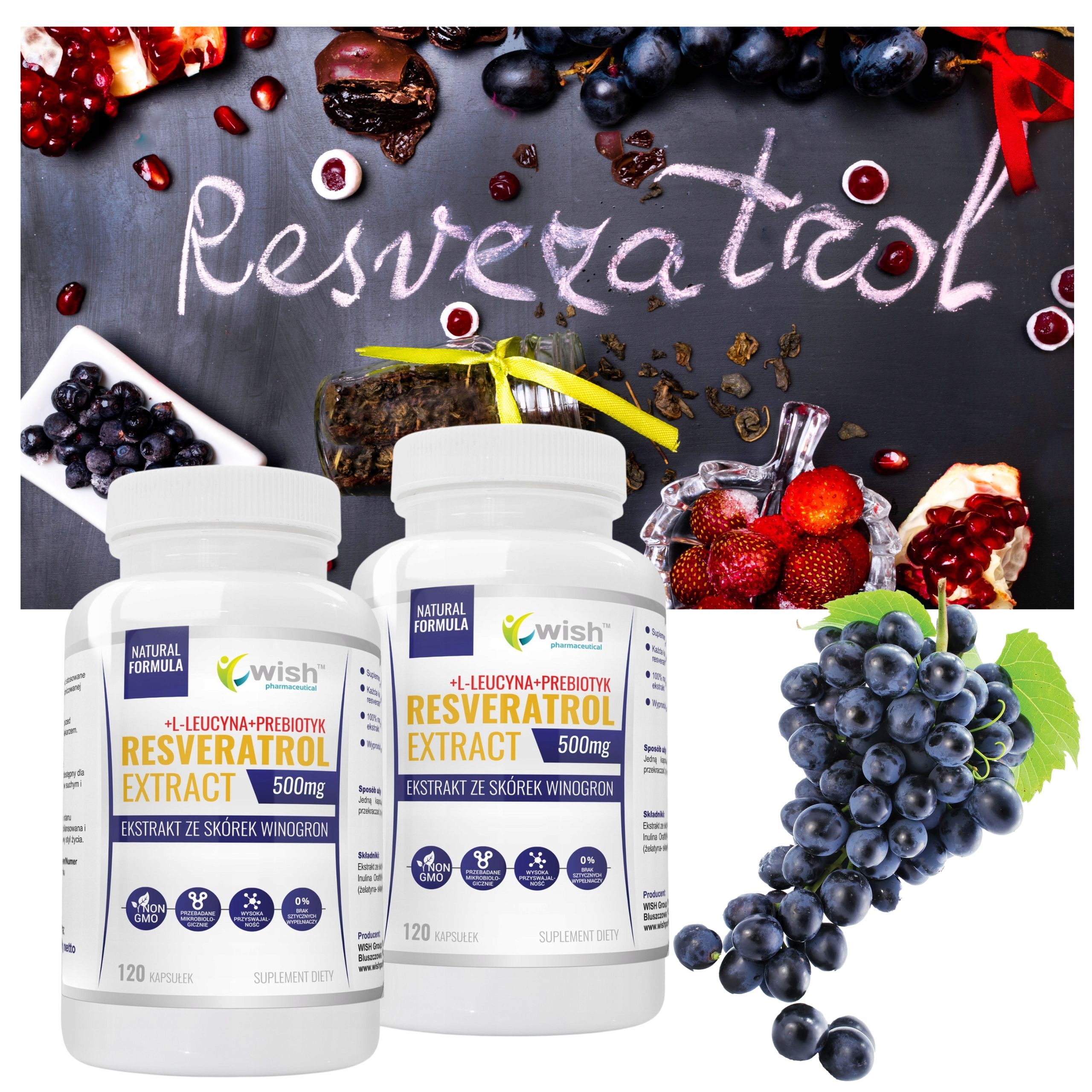 Найкращими європейськими джерелами ресвератролу є темні сорти винограду, особливо їх шкірка. Саме такий 100% висококонцентрований екстракт шкірки темного винограду пропонує компанія Wish Pharmaceutical – лідер у Польщі серед виробників натуральних добавок.