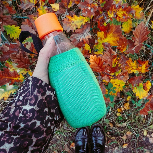 Справа була зроблена з еластана з екологічним сертифікат , який плавно адаптується до кривих пляшок ретапів. Це приємно утримувати і забезпечує гарне зчеплення . Бічний ремінь полегшить носити пляшку Retap на пальці або два.