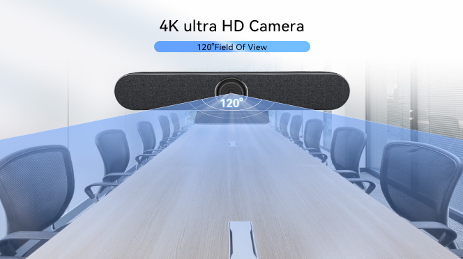 Завдяки широкому куту огляду 120° і 5-кратному зуму всіх у конференц-залі буде добре видно, незалежно від того, чи вони знаходяться близько до камери чи на краю кімнати. 5-кратне збільшення зображення на екрані усуває проблеми з відстанню.