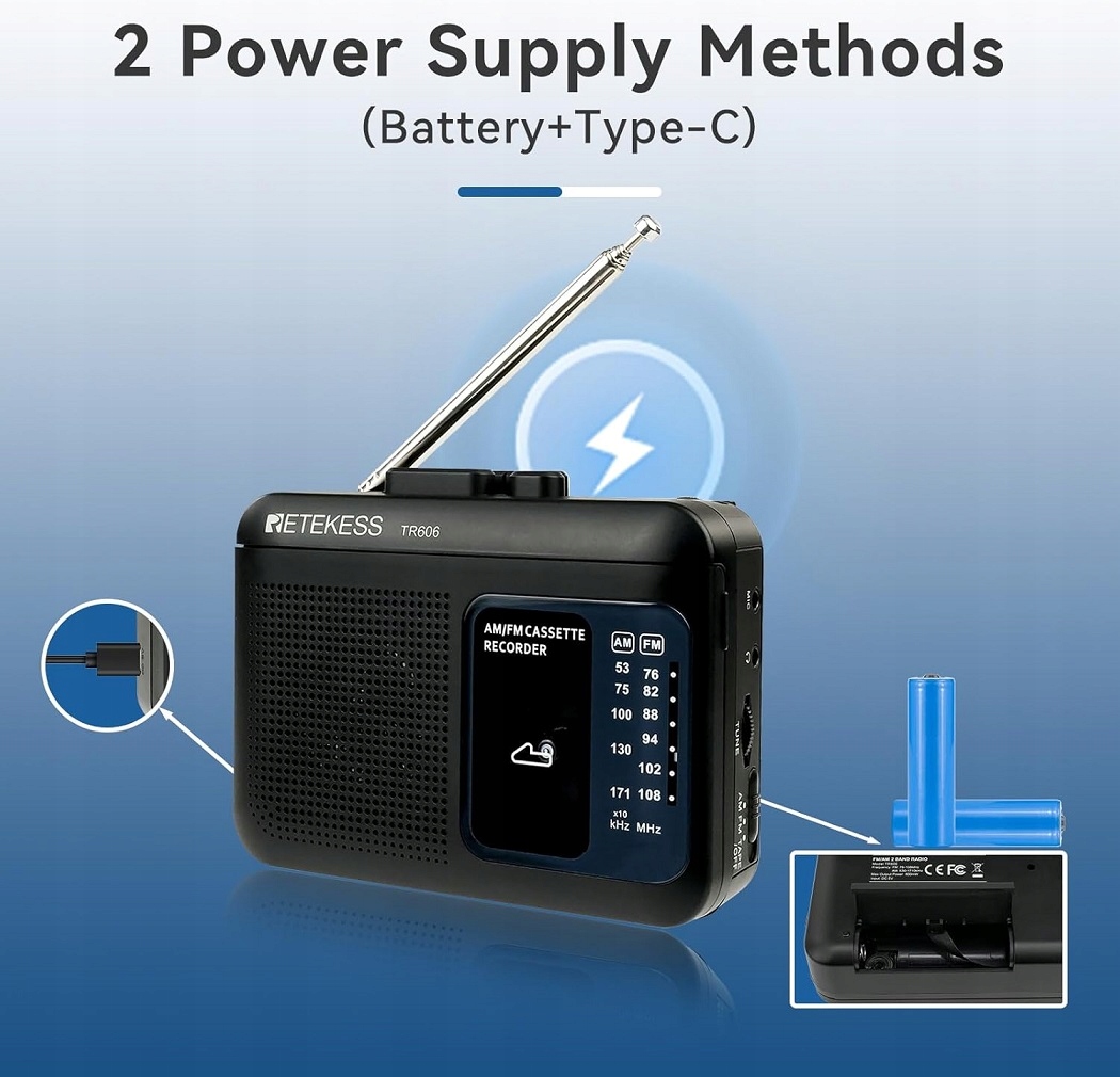 RETEKESS TR606 ПОРТАТИВНИЙ КАСЕТНИЙ МАГНІТОФОН FM AM РАДІО