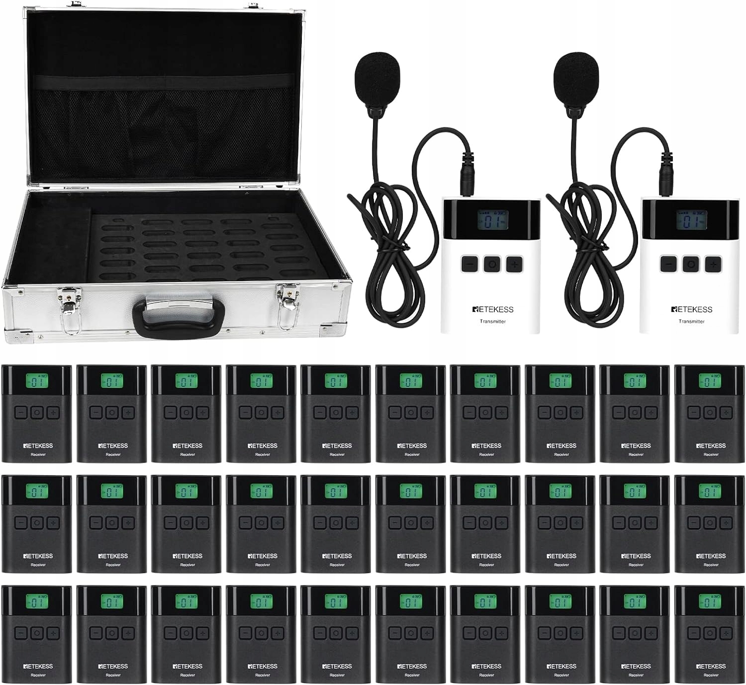 2 x tt122 передавач; 2 х мікрофон; 30 x TT122 приймач; 30 x одиночні навушники