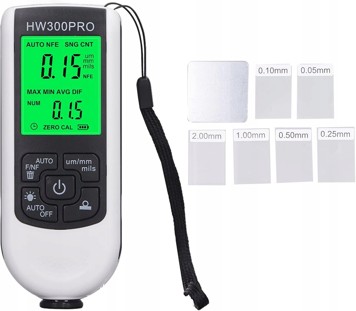Лічильники товщини використовуються для вимірювання товщини металевих покриттів та покриттів, таких як фарба/емаль/хром на сталі, фарби та покриття анодовані алюміній/мідь. Автоматичне виявлення властивостей підкладки.
