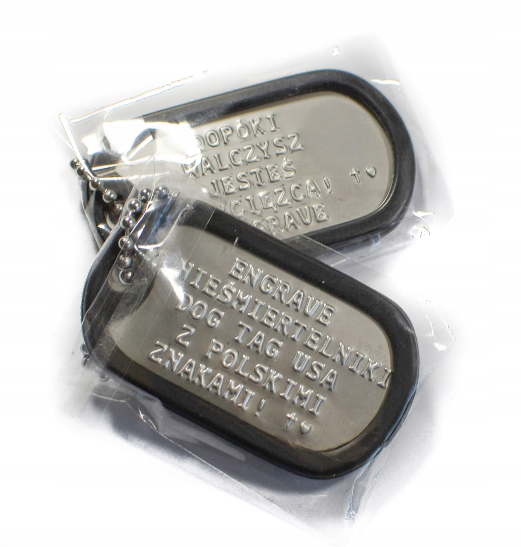 Ласкаво просимо на аукціон Engraf Store. Ми пропонуємо повні безсмертні з порушенням . Що нас відрізняє від конкуренції, це той факт, що ми можемо вибити будь -який текст - також з польськими діакритичними знаками (польські хвости). Більше хвостів - нехай ваші дані, улюблений девіз, цитата чи інший текст, вражений на собачій тегу, звучить справді польською мовою ("і повідомте нації, що полюси не йдуть на гусах, що вони мають свою мову" - mikołaj rej)! Армія США, виготовлена з оригінальних компонентів і вдарила по оригінальній машині. Ми вибиваємо кожен піднос для випічки на автентичній машині, яку використовує американська армія (машина була спеціально пристосована до нас за вибиванням польських знаків - купуючи з нашими, ви можете бути впевнені, що ви отримаєте окремого польського безсмертного, забитих як сучасні військові безсмертні в США, - ми є єдиними власниками первісної армії США з польськими діакритичними позначками в Поланд).