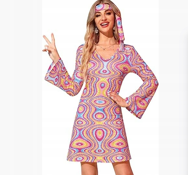 Ретро -дискотека з 70 -х. Костюм хіпі, доступний у багатьох кольорах
