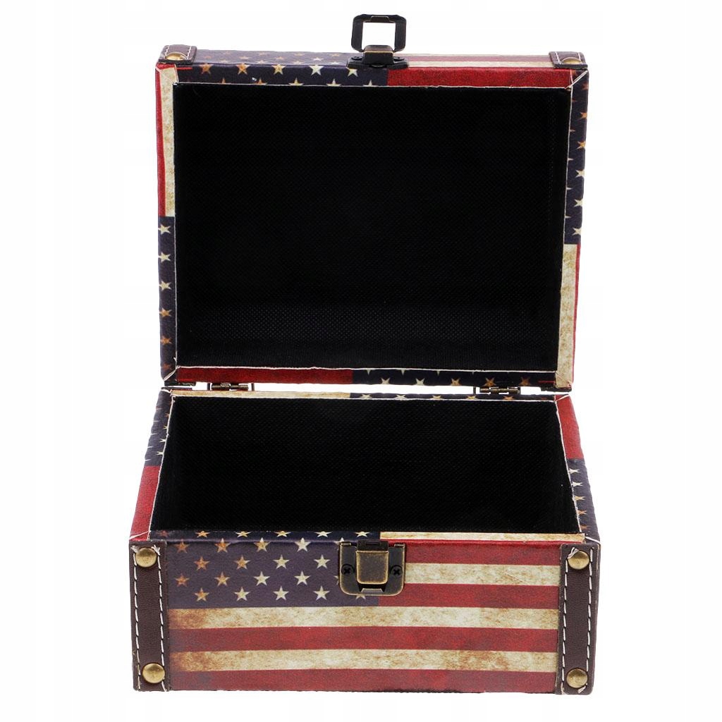 Ретро-дерев'яна скринька для зберігання ювелірних виробів Органайзер-скриня зі скарбами Прапор США