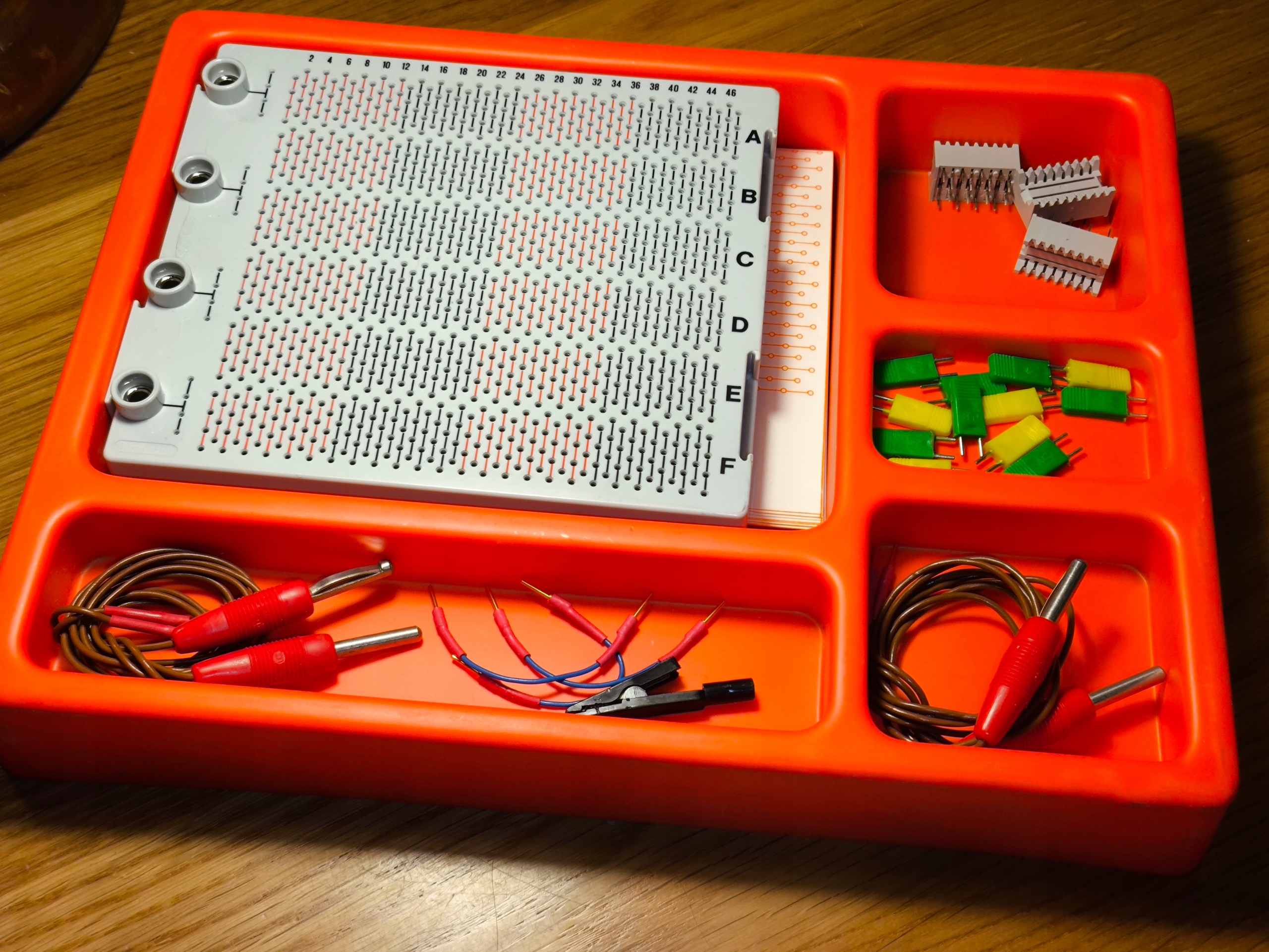 Hirschmann XP 101 — це ретро-експериментальна плата кінця 1970-х та початку 1980-х років, розроблена для швидкого створення прототипів електронних схем без необхідності пайки. В основному він використовувався в технічних школах, навчальних лабораторіях, а також любителями та інженерами-любителями. Це дозволяє створювати та тестувати цифрові та аналогові схеми в умовах навчання та майстерні. Пропонований блок має з'єднувальну плату в ідеальному стані, але комплект неповний - відсутні деякі з'єднувальні кабелі та роз'єми з оригінального обладнання.