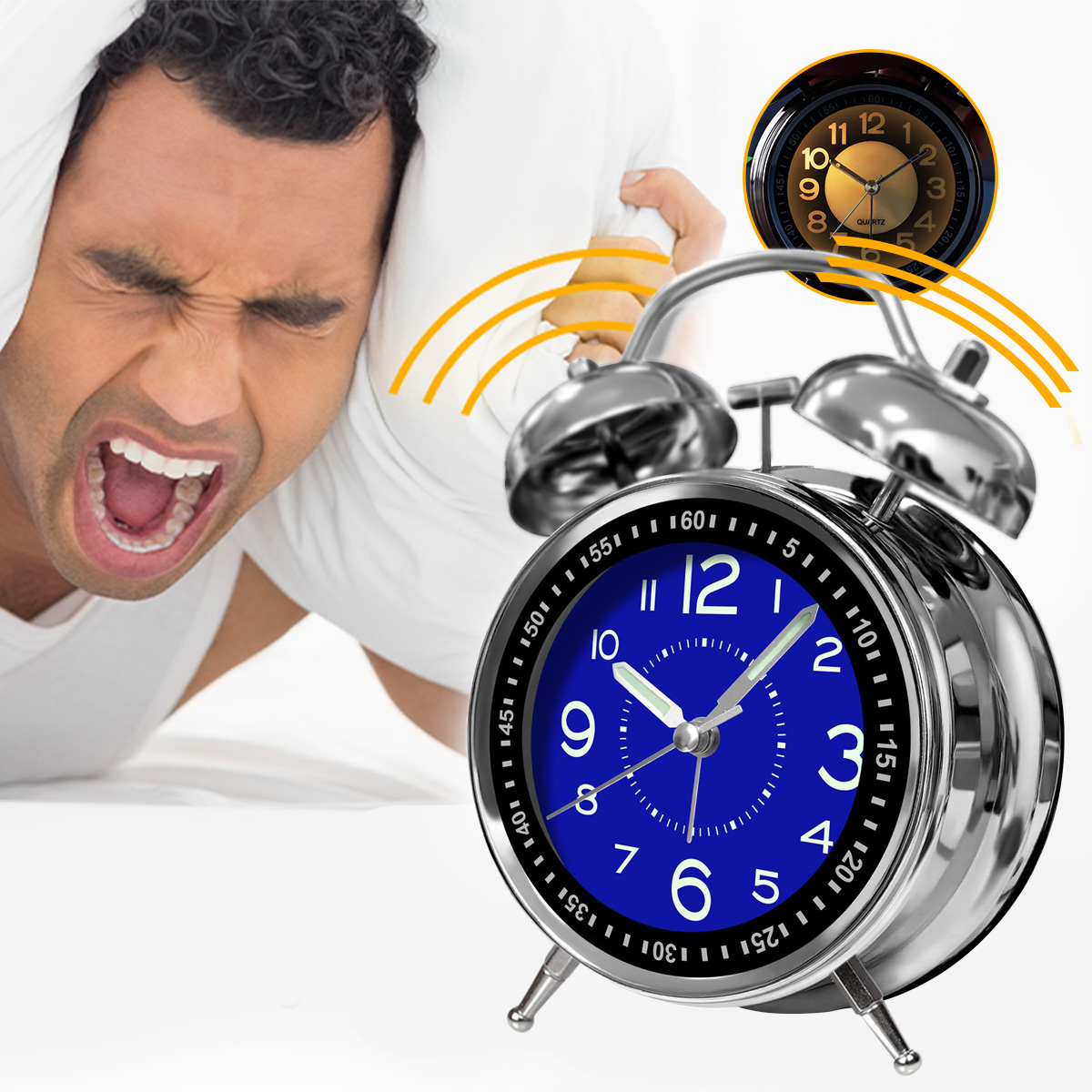 Цей будильник із подвійним дзвінком має гучний сигнал і ідеально підходить для тих, хто спить глибоко, усуваючи труднощі з підйомом з ліжка вранці.
