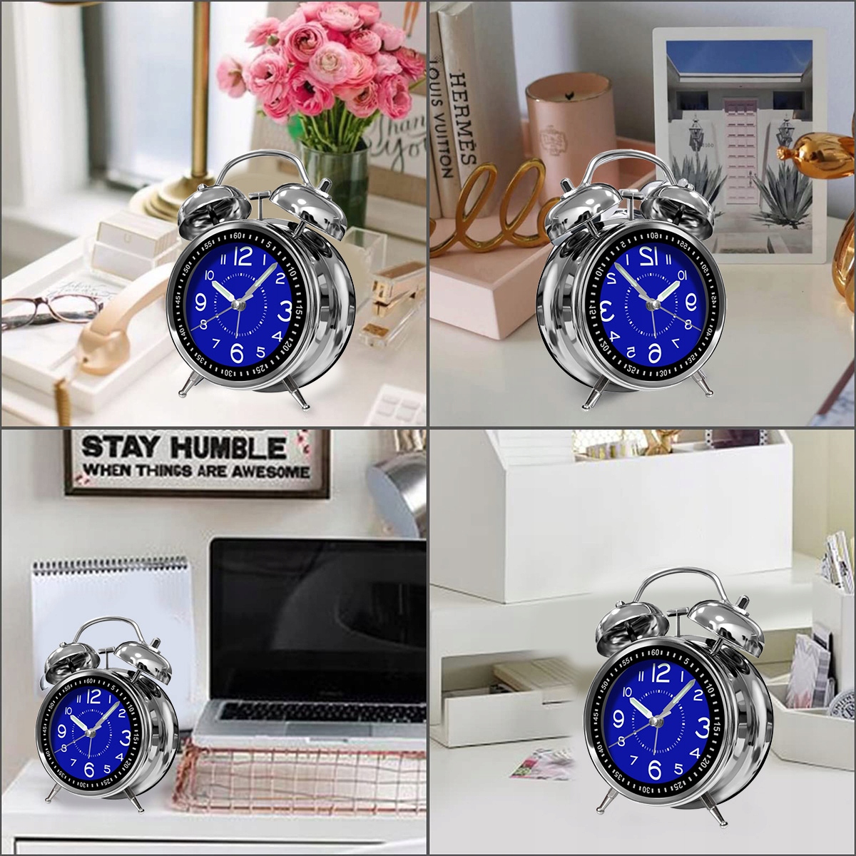 Класичний сріблястий металевий каркас, синій циферблат і привабливий цифровий дизайн роблять цей будильник справжнім привертанням уваги.