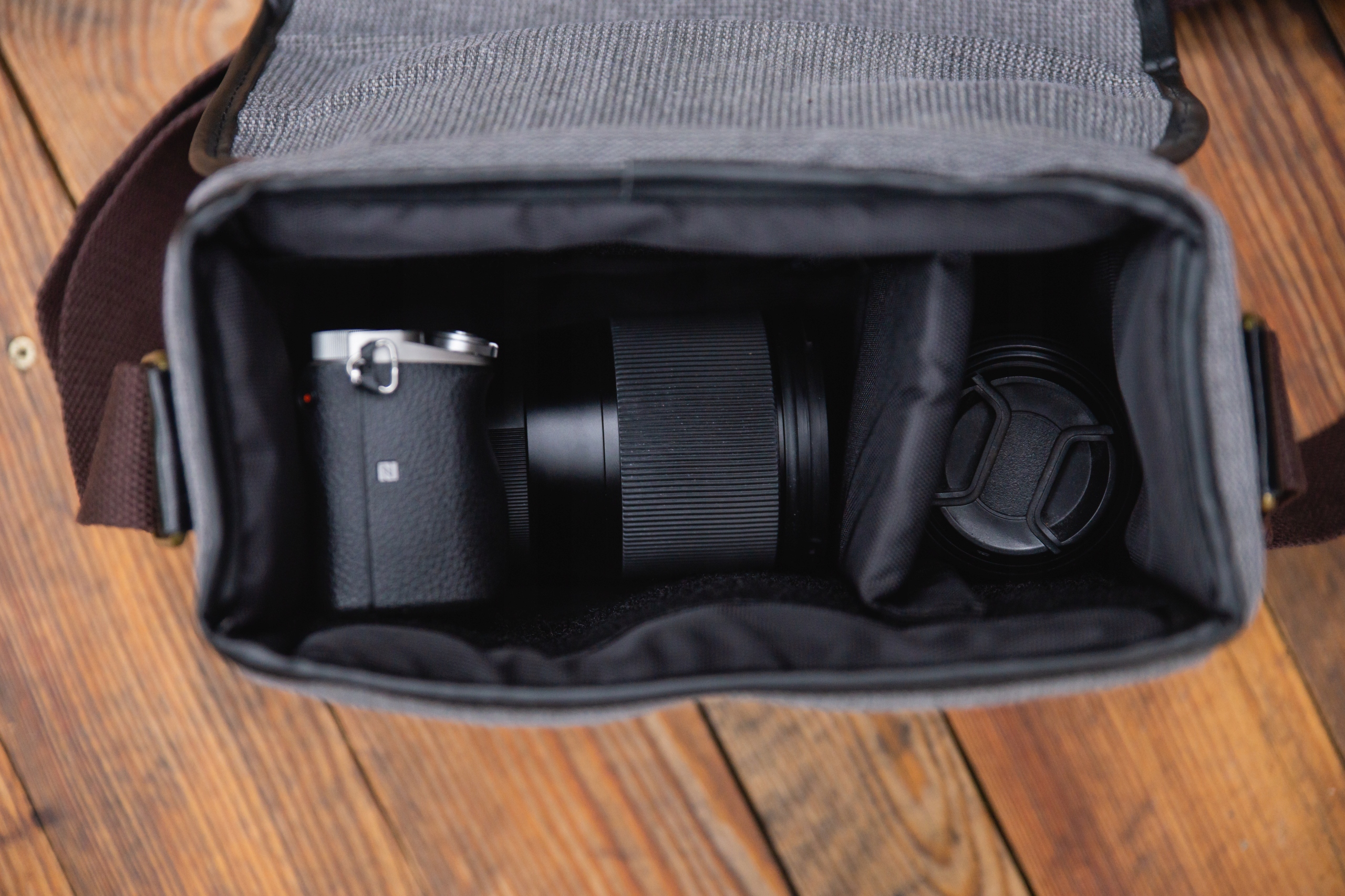 Елегантна фотосумка в стилі ретро дозволить вам безпечно і комфортно носити невеликий фотоапарат, два об’єктиви та інші дрібні фотоаксесуари.
