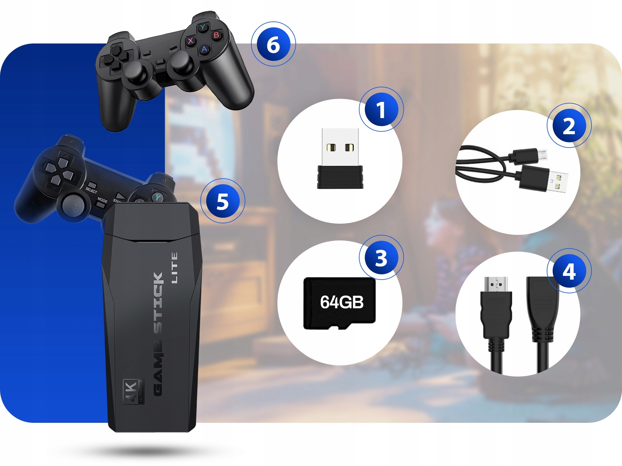 На консолі попередньо завантажено понад 20 000 ігор, з яких ми можемо вільно вибирати. На консолі багато культових ігор з різних ретро-платформ, 2 бездротові планшети, що входять до комплекту, дозволять вам позмагатися в різноманітних іграх.