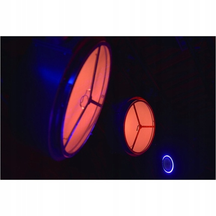 На задній частині корпусу розташовані розетки PowerCon (в тому числі «передай»), чотири розетки DMX (два входи і виходи), а також панель управління у вигляді LED-дисплея і трьох кнопок ( Меню, Вгору, Вниз). Використовуючи їх, ми можемо вручну встановити шаблон освітлення відбивача або вибрати один із десятків вбудованих налаштувань. Проте найефективнішим способом керування роботою підсвічування є протокол DMX.