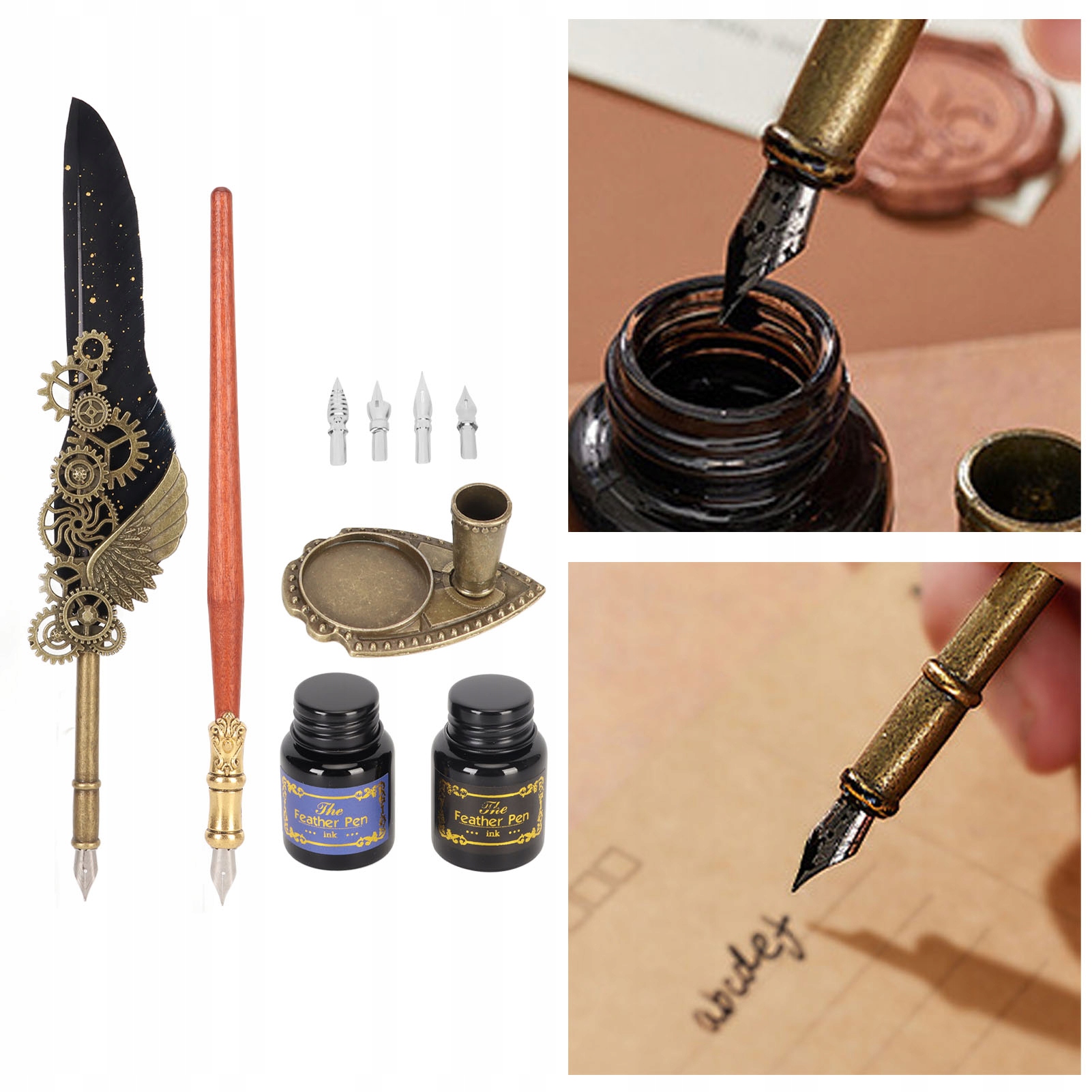Ретро-панк ручка та набір чорнила Smooth Writing Exquisite Feather Pen and Ink Set for Home School Office Black