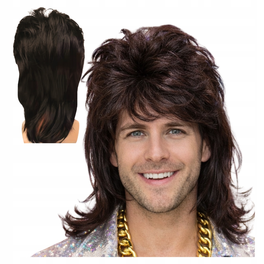 РЕТРО ПЕРУКА 80-Х 90-Х ДИСКО КАРНАВАЛЬНИЙ НАРЯД СУКНЯ КОСТЮМ MULLET ROCK