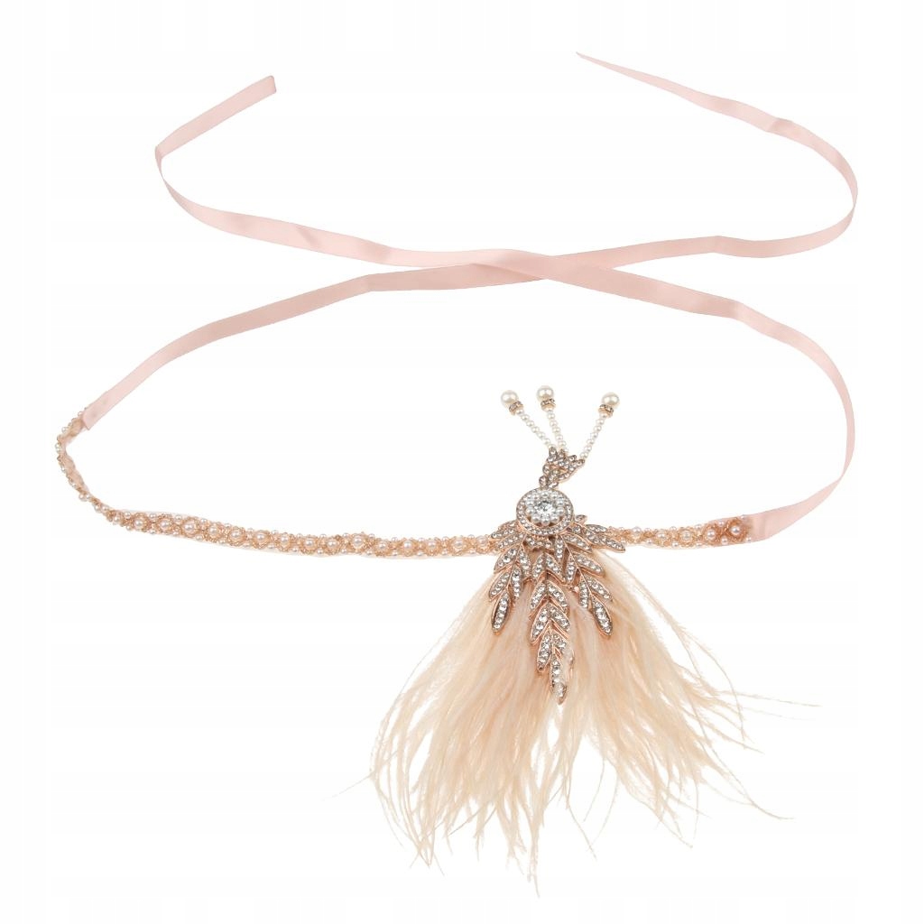 Ретро-пов'язка на голову з пір'ям та перлинами зі стразами