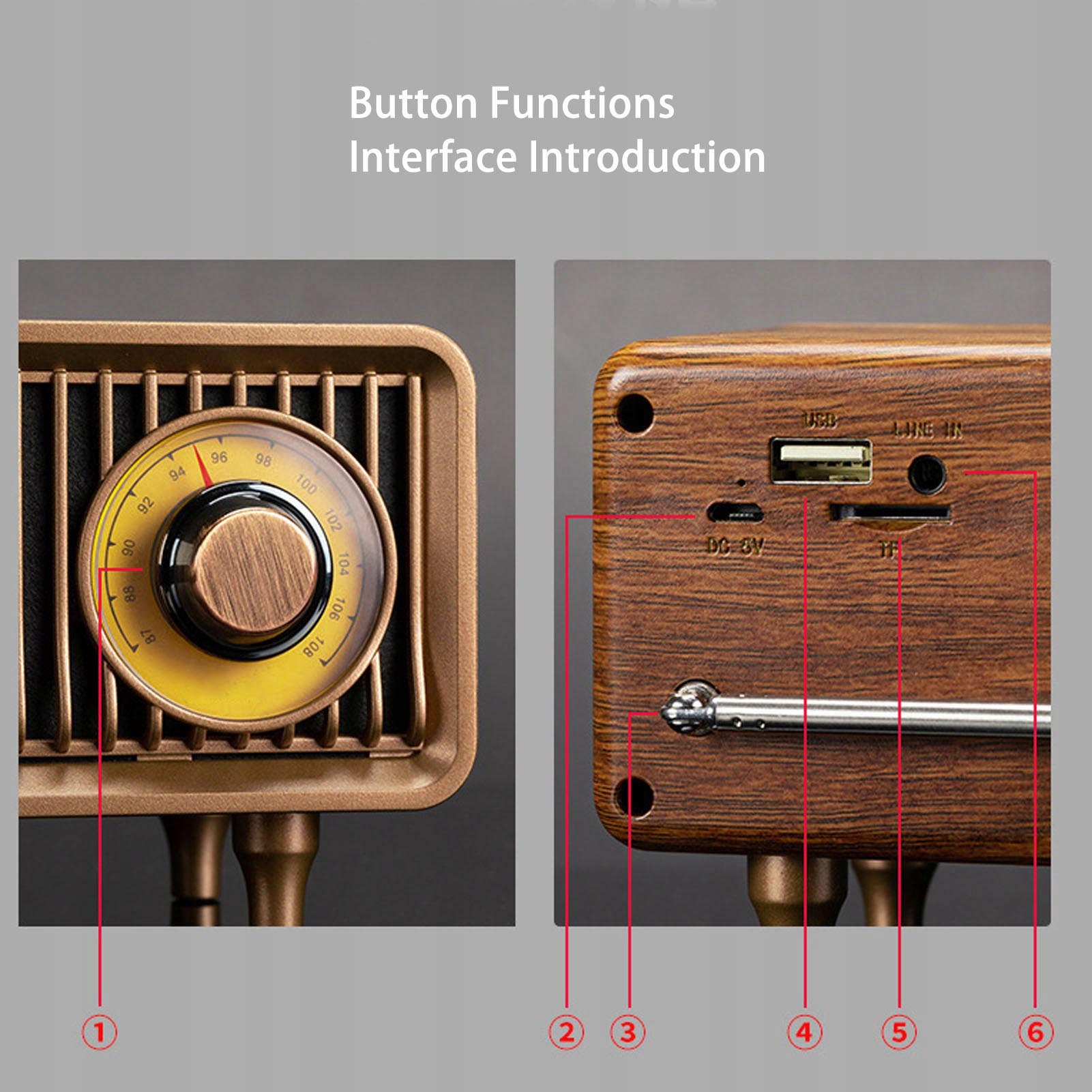 Ретро радіо Bluetooth Динамер FM стерео дерев'яний кухонний звук