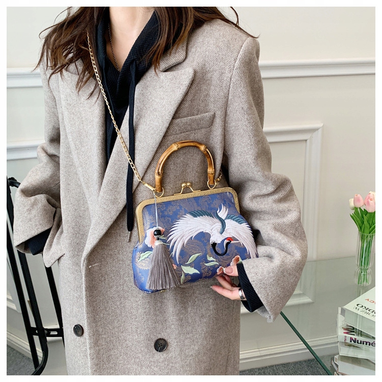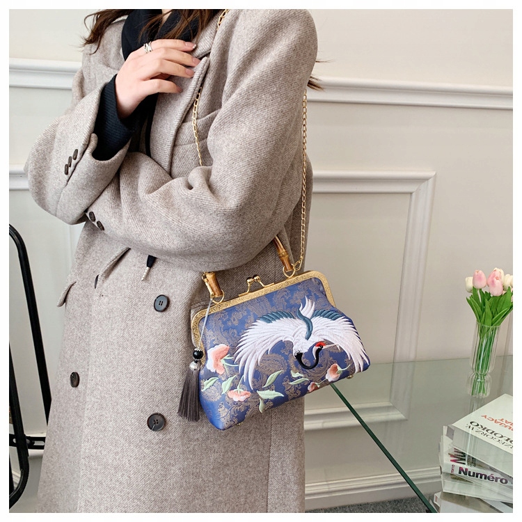 РЕТРО СУМКА З ЖАККАРДОВОЮ ВИШИВКОЮ З ЛАНЦЮЖКОМ