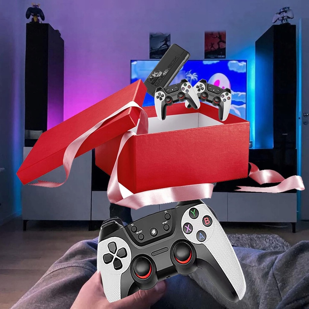 - Портативна ігрова консоль має більш компактну та зручну конструкцію, оснащену бездротовим джойстиком 2.4g X2, якою можна керувати на великій відстані, що усунув складний комбінований лінійний відео ігор, просто з'єднує потужне харчування. Увімкніть бездротовий контролер, і він буде готовий до використання