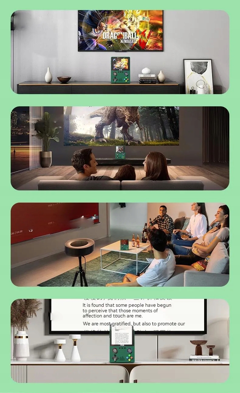 Гра має 3,5-дюймовий HD-дисплей. Ви можете легко підключити його до телевізора за допомогою кабелів, що входять у комплект, щоб, наприклад, грати в ігри, слухати музику, переглядати документи чи переглядати фільми.