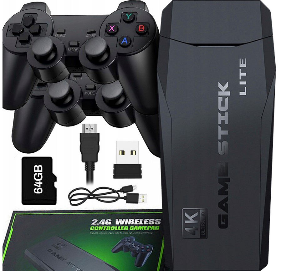 RETRO TV CONSOLE TV GAME HDMI 2 PADS 20000 GAMES MENU PL HDMI 64GB