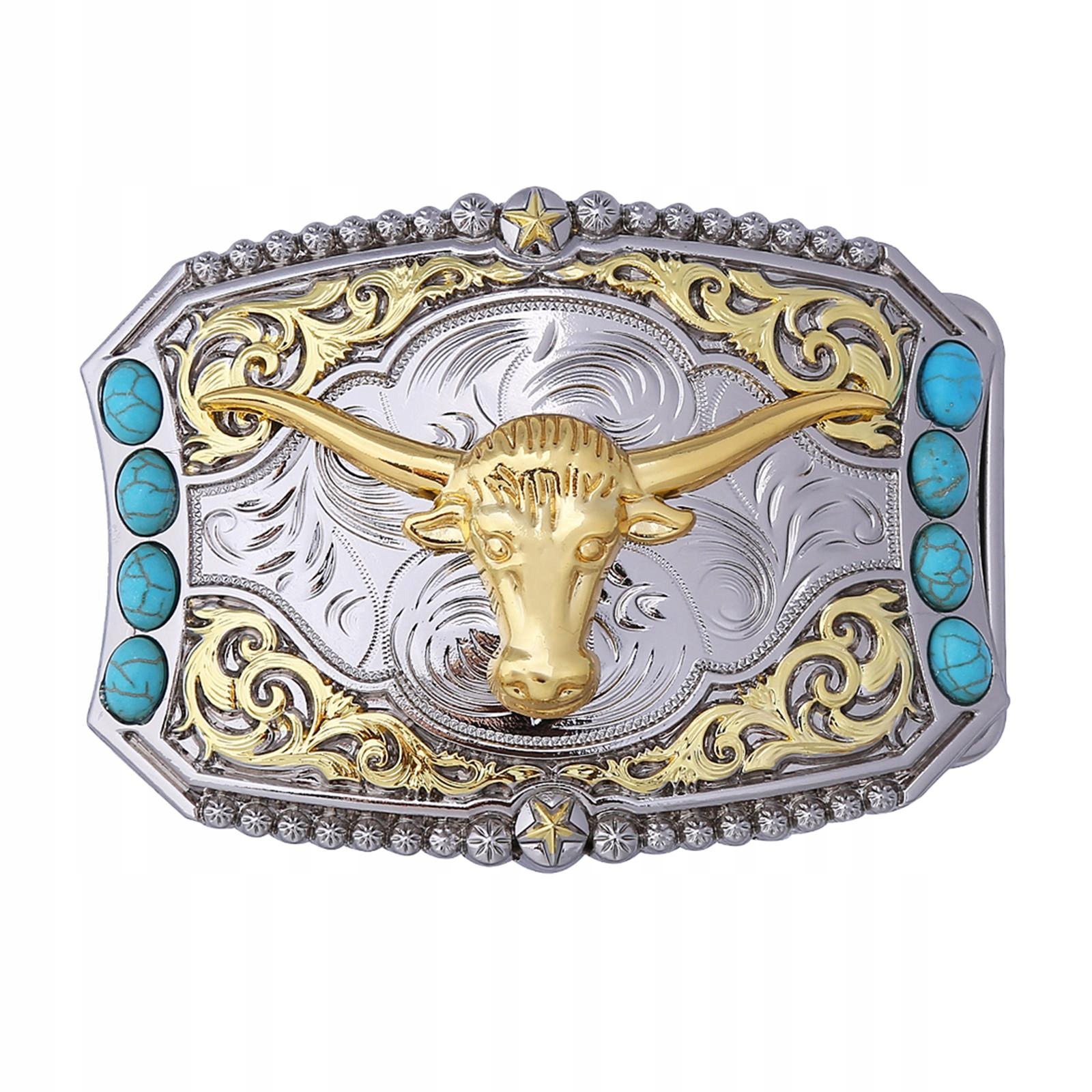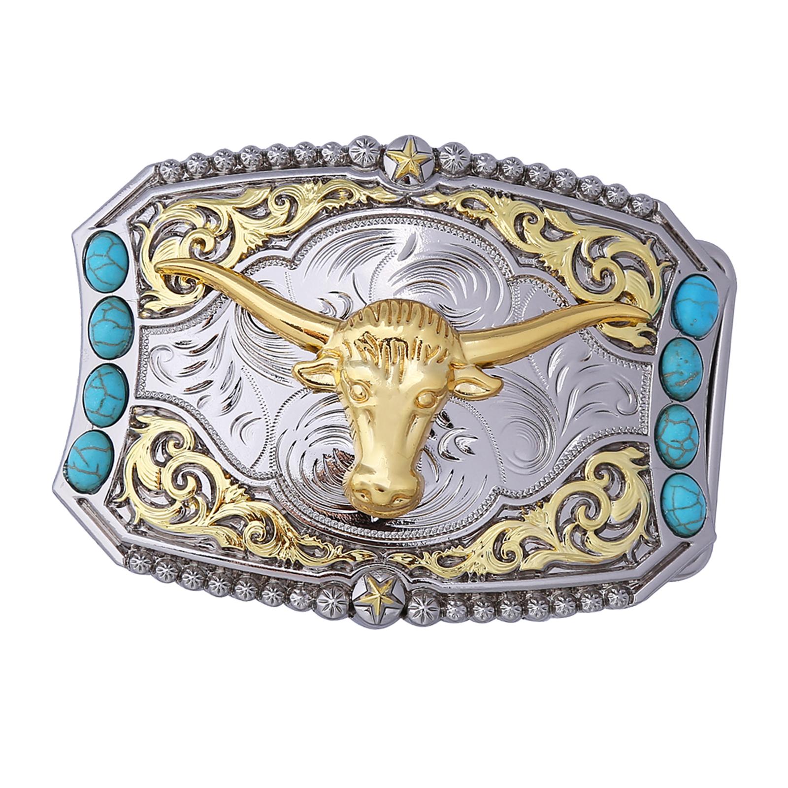 ДИЗАЙН: західна пряжка з гравіюванням голови бика та квітковими візерунками, бірюзовим декором, виглядає модно та вишукано.