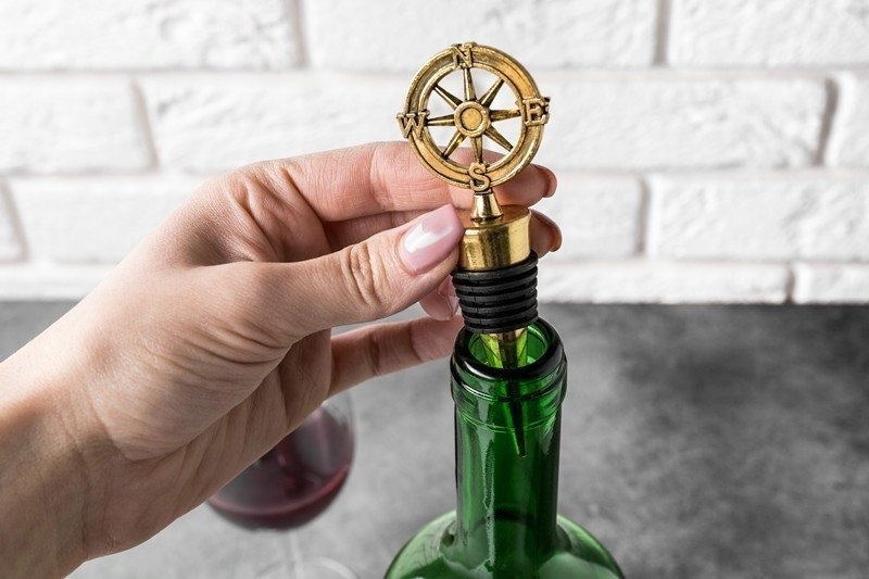У серії для мандрівників, мандрівників і дослідників, а також для звичайних поціновувачів вина, у нас є красива, стильна пляшкова пробка з мотивом рози вітрів. Як і відкривачка Aeroplan, вона покликана згадати тугу про близькі та далекі подорожі, чудову відпустку, проведену в чудових місцях із сім’єю та друзями, заплановані та завершені експедиції та подорожі на вихідні. Усі, хто любить подорожувати та відкривати нові місця, знають, про що я говорю, і із задоволенням візьмуть цю акуратну заглушку. Вигадлива коробочка з картою світу в якості фону доповнює позитивний образ цього маленького гаджета, який викликає стільки приємних спогадів і позитивних емоцій. Вилку також можна поставити на письмовий стіл, сервант чи камін як прикрасу нашого інтер'єру, адже це просто гарно та стильно :)