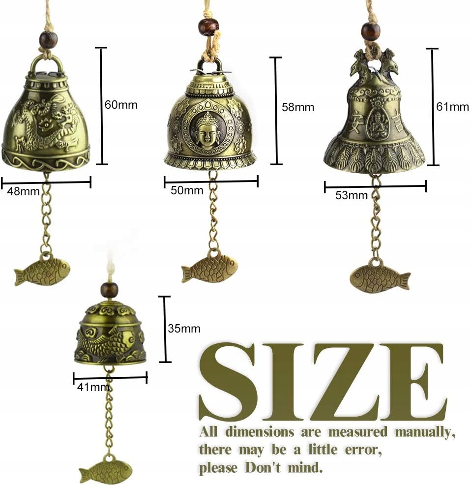 - 【Дизайн】: латунні дзвіночки з важливим елементом східного стилю, у вигляді різьблених драконів/риб/фенікса/будди на поверхні дзвоника, що означає щастя та здоров’я який багатий на китайську культуру. Дзвоник рухається на вітрі та видає чудовий, чистий, приємний і м’який звук.