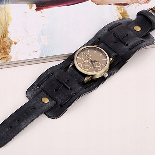 ретро вінтажний годинник із великим шкіряним ремінцем