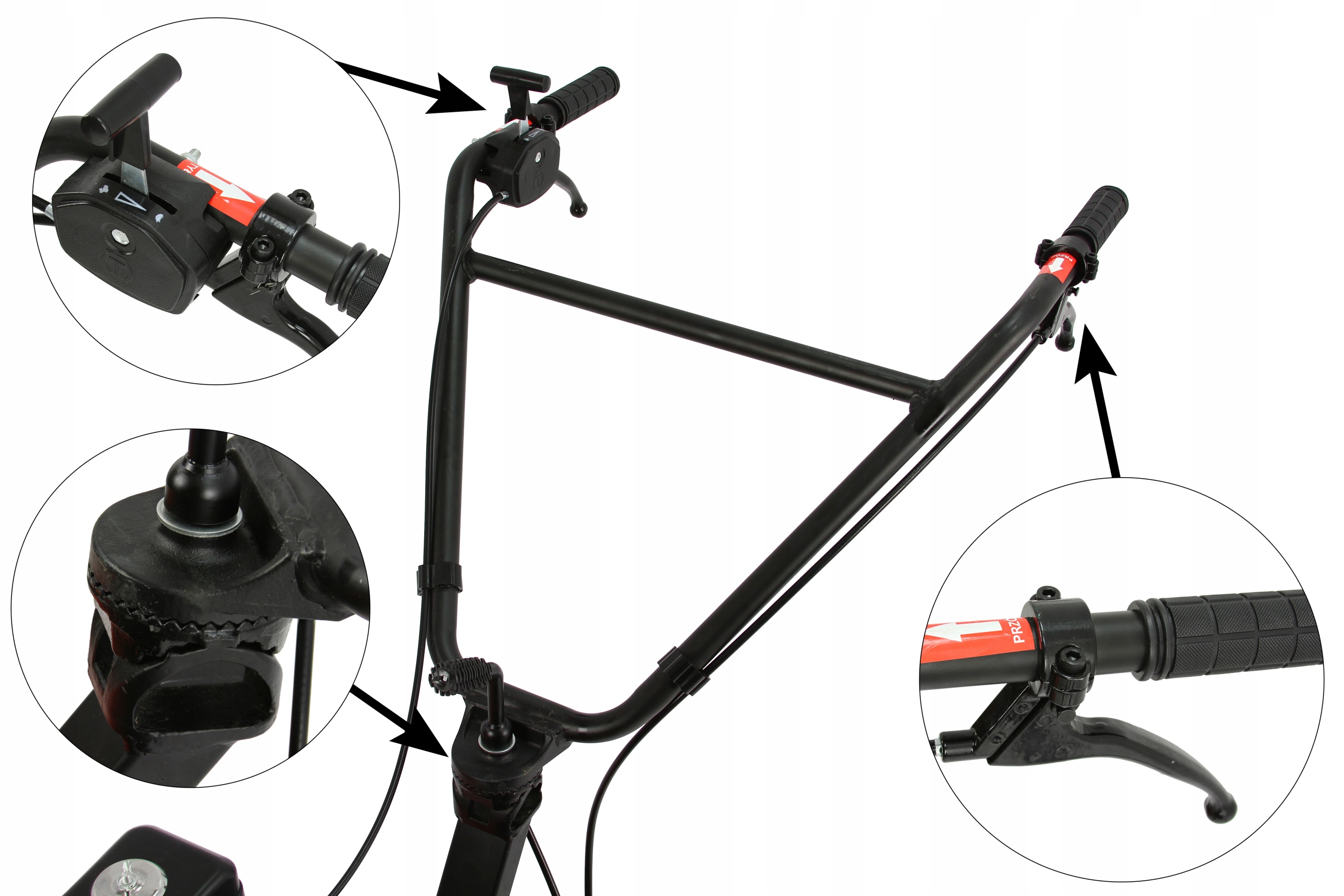 Ергономічні ручки полегшують керування мотоциклом, відстань ручки оптимізована для комфорту під час експлуатації. Ручка можна легко регулювати без використання інструментів у двох площинах, вбік і верхній.