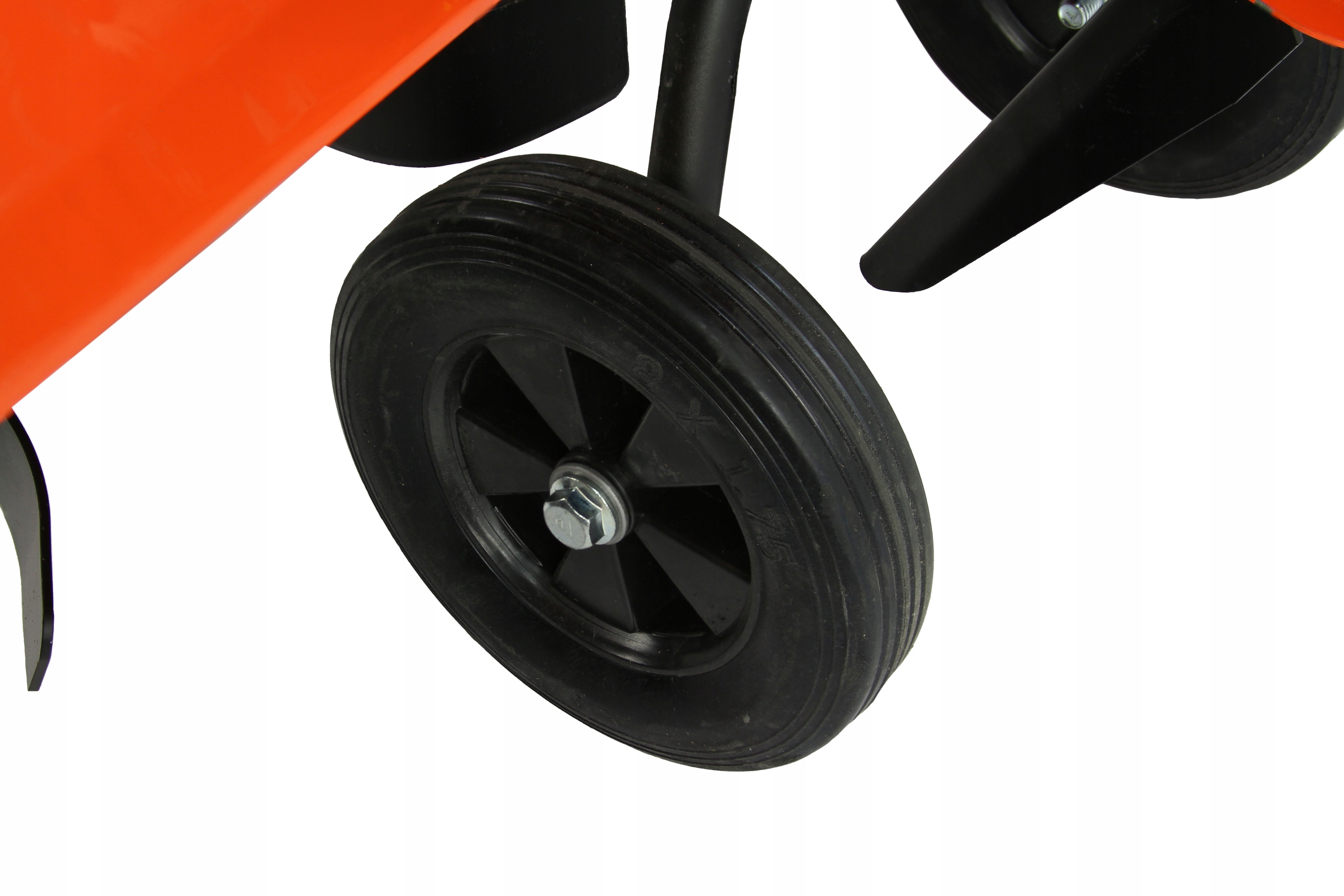 Тіллер має транспортні колеса, які полегшують рух та регульований контроль контрольного важеля та глибину роботи. Дорожні колеса можна відрегулювати на 3 рівні.