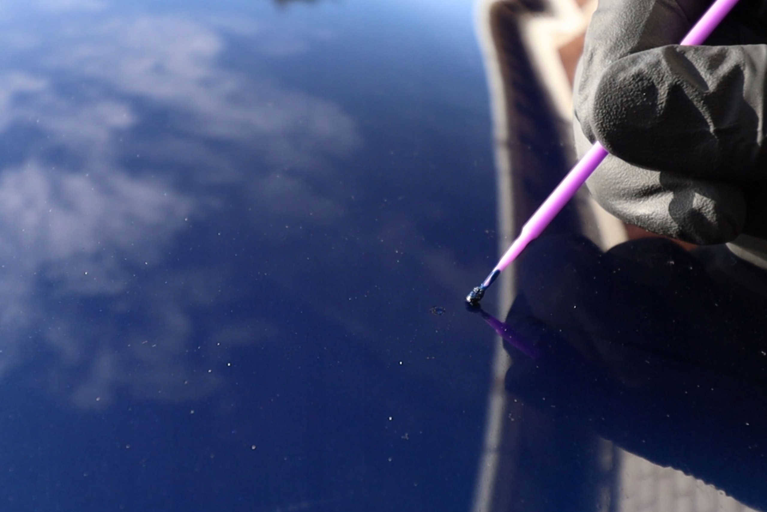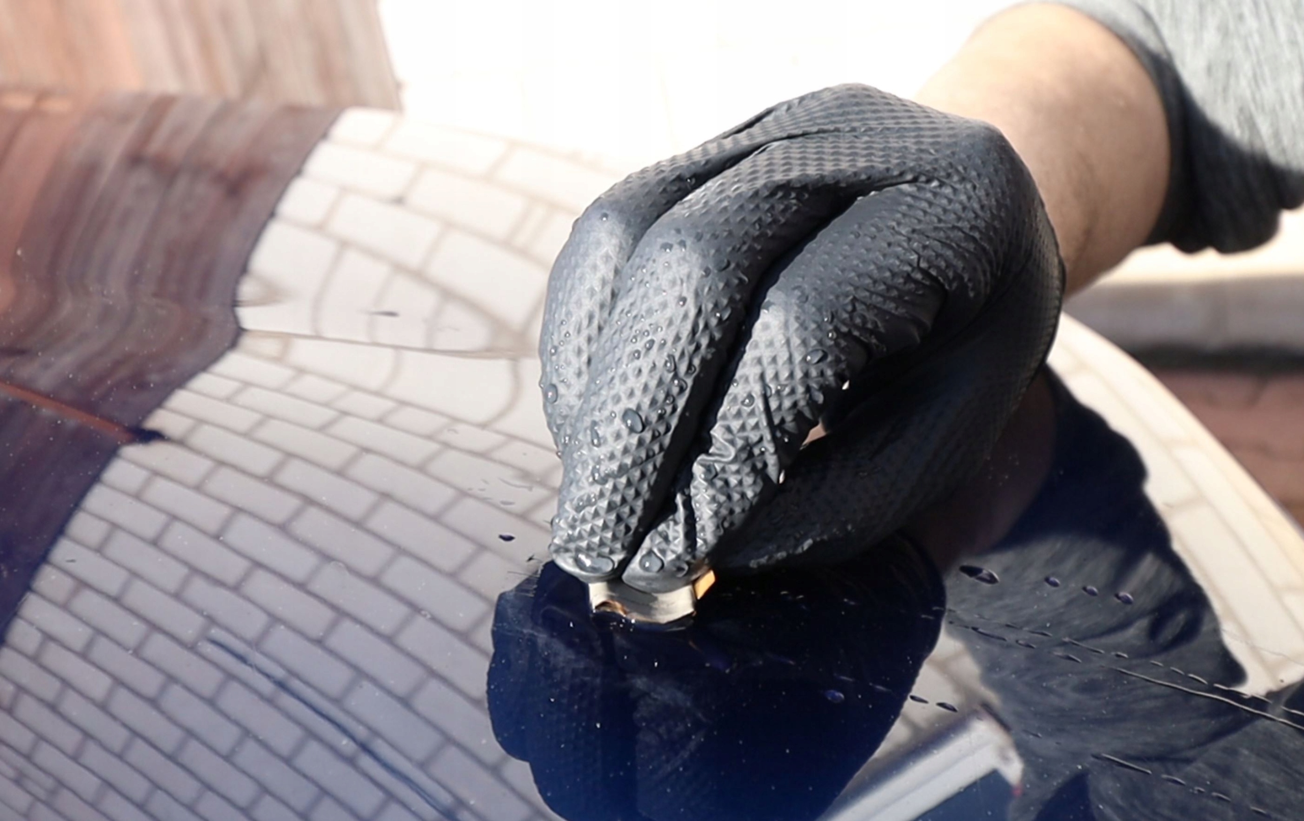 - За допомогою аплікатора або пензлика нанесіть два тонкі шари фарби на скол або подряпину з інтервалом 10-20 хвилин при 20°C. УВАГА! Якщо є більший дефект, лак осідає, і тоді його слід відновити, нанісши інший шар.