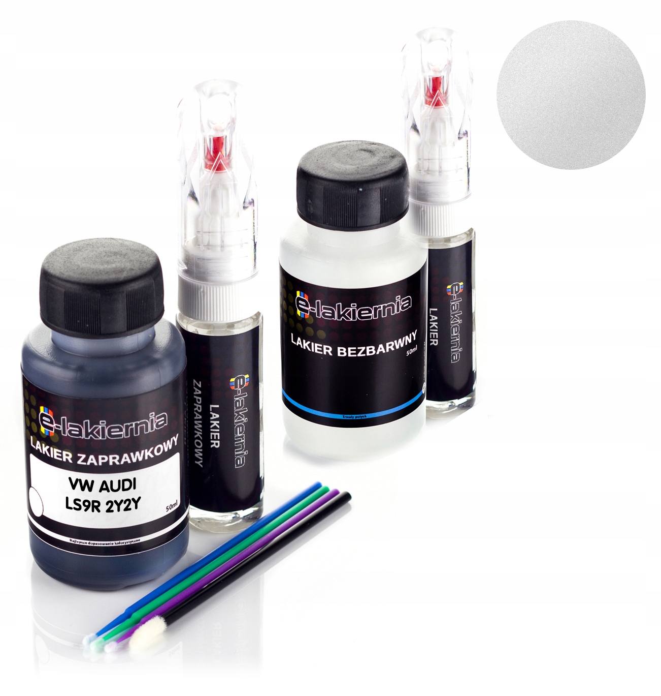 НАБІР ФАРБ ДЛЯ РЕДУШУВАННЯ E-PAINT SHOP 2x50мл + ПОРОЖНІ ПЛАКОНКИ З РАПІДОГРАФОМ 2x20мл + 4x АПЛІКАТОРИ