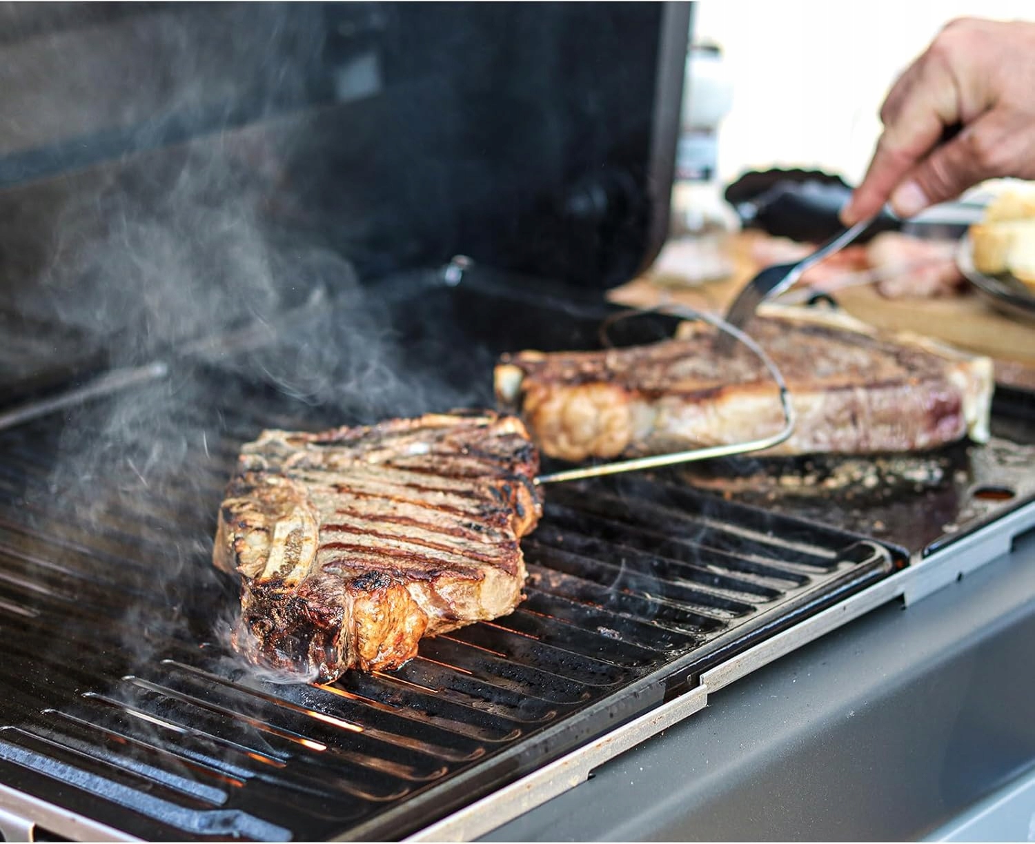Універсальна чавунна пластина для гриля: 43 см x 32 см. Двостороння пластина для гриля ідеально підходить для смаження їжі та може використовуватися з обох сторін. Ребриста поверхня залишає гарні сліди на стейку, а гладку сторону можна використовувати як плаский гриль, щоб підтримувати температуру протягом тривалого часу та рівномірно розподіляти тепло