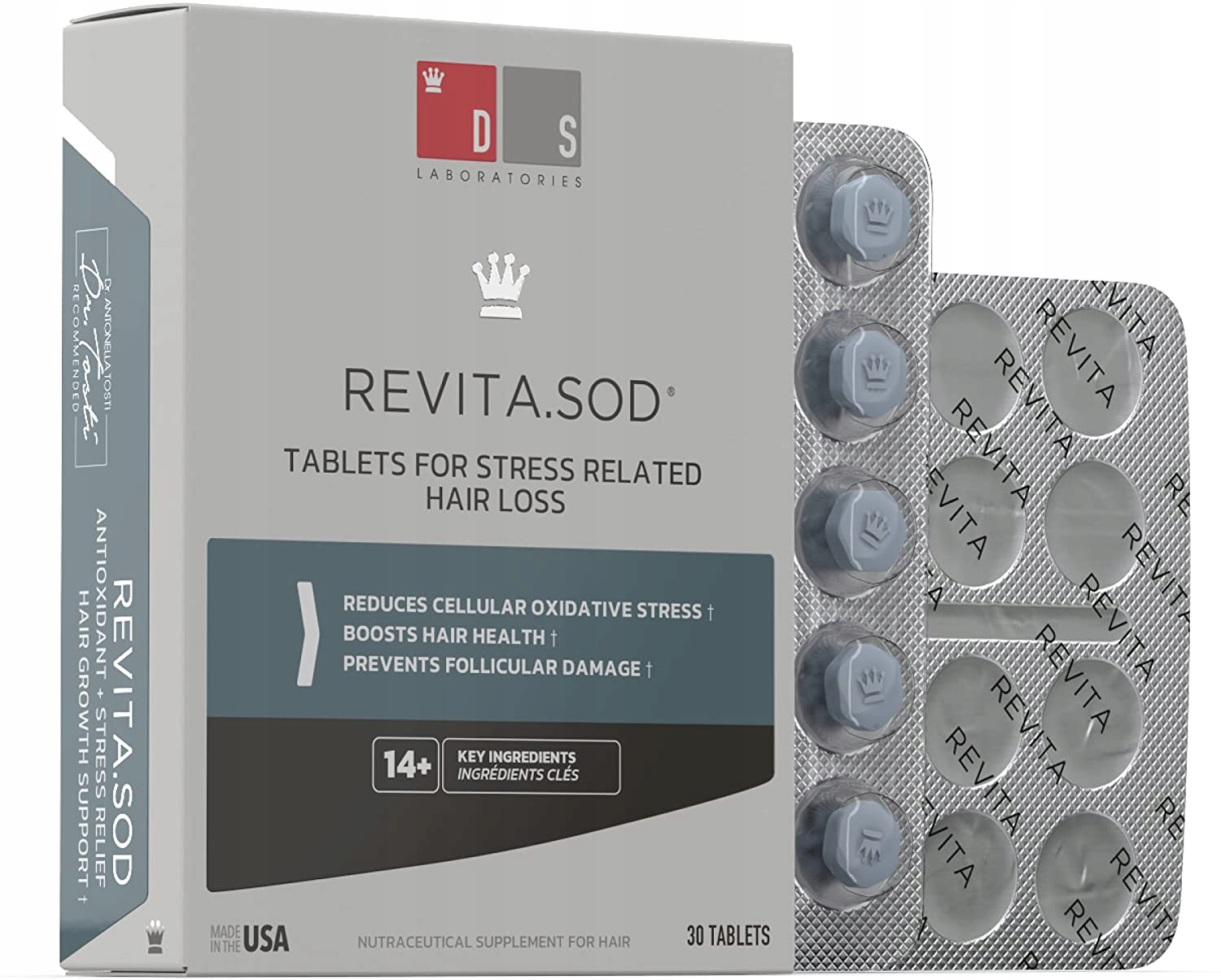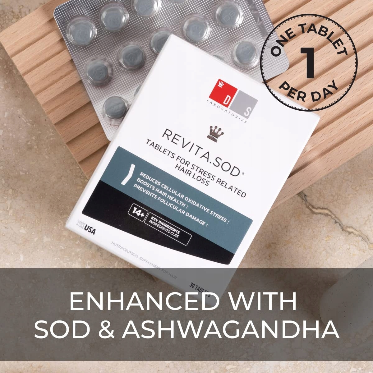 Revita.SOD® – це антиоксидантні таблетки, які покращують природний ріст волосся, зосереджують свою дію на стресі та зменшують окисне пошкодження. Наша запатентована формула, збагачена супероксиддисмутазою та ашвагандою, ефективно бореться з вільними радикалами, викликаними стресом і факторами навколишнього середовища.