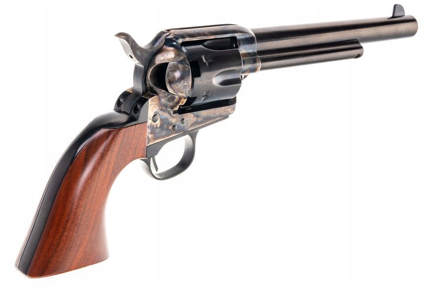 Вірна копія одного з найвідоміших ударних револьверів в історії, спочатку виготовленого легендарною американською компанією Colt. Модель Cattleman — це 6-зарядний ударний револьвер із чорним порохом.