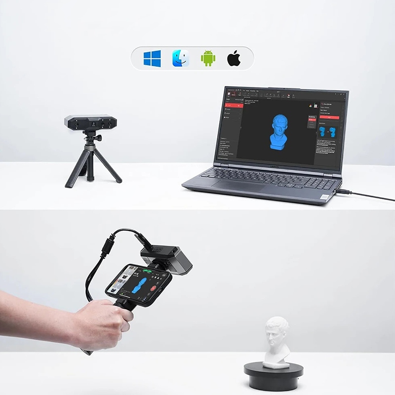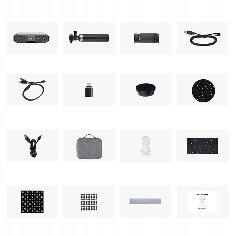 вагою лише 175 г міні 2 зручно утримувати та перенести. Він постачається з безкоштовним програмним забезпеченням для сканування користувача, Revo Scan, яке робить все, від сканування до остаточної обробки. Експортні моделі у форматах STL, Fly та Rev., готові до використання в програмному забезпеченні 3D -друку та моделювання.